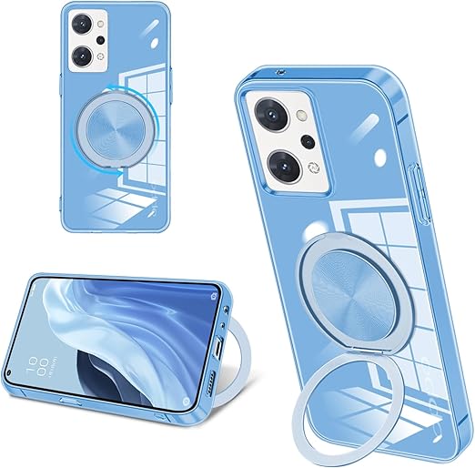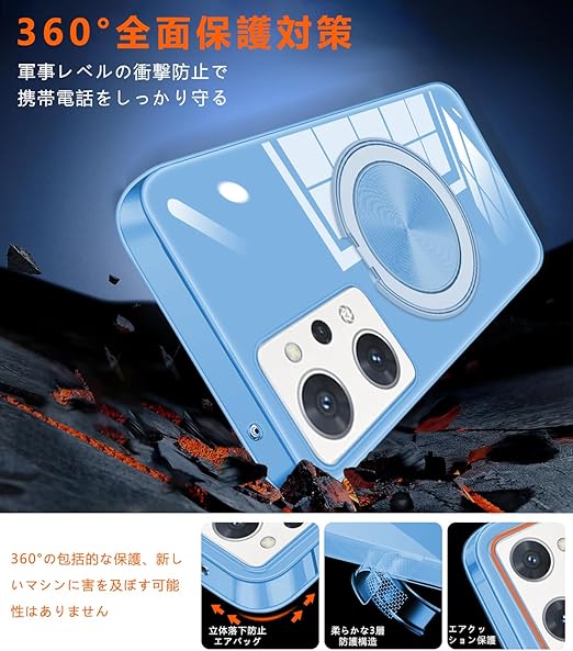 OPPO Reno9 A / Reno7 A ケース シリコン MagSafe対応 リング付き 360°回転スタンド 縦横両対応 アジャスタブルスタンド マット仕上げ 耐衝撃 スマホ ケース OPG04 CPH2353 CPH2523 カバー 衝撃吸収ポケット内蔵 TPU 薄型軽量 ストラップホール付き オッポ リノ7 a / リノ9 a 保護カバー b