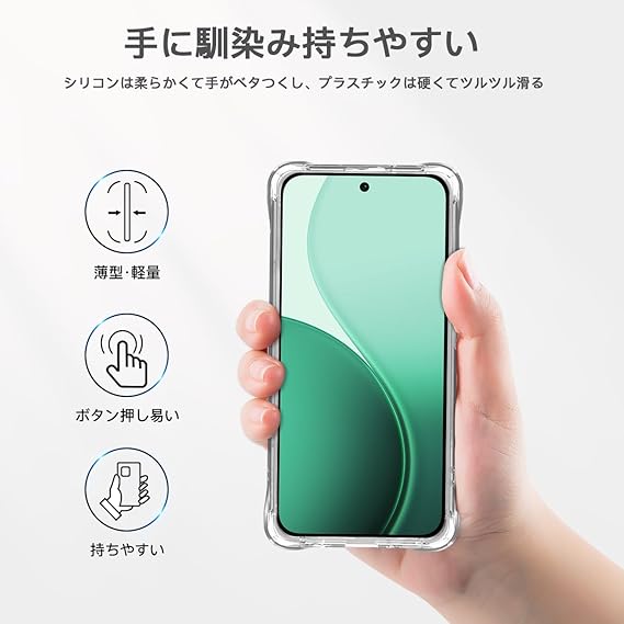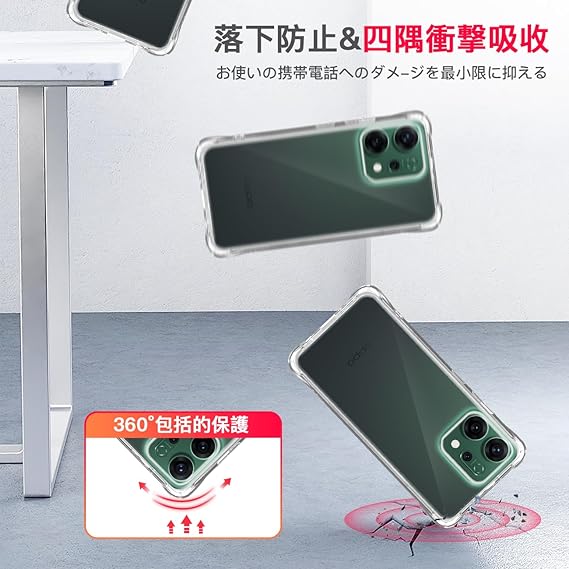 【360°全面保护】対応 OPPO Reno14 落下時の衝撃を出来る限り緩衝出来るよう、四隅で衝撃を吸収する「エアクッションテクノロジー」を採用。レーム部分とのフチを高く設計し。平らな場所においても、液晶画面ズに直接触れることがなく、対応 Reno14 全面保護カバ
