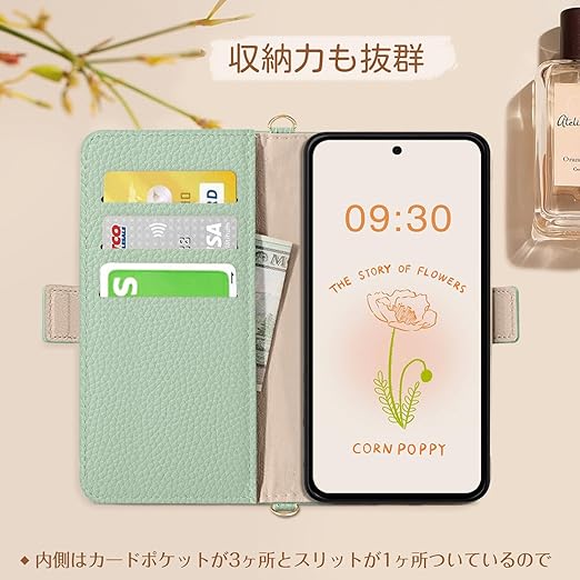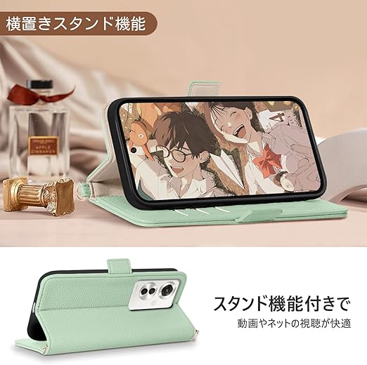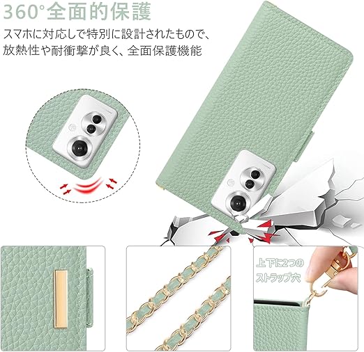 CASSYOOK oppo reno 11a ケース 手帳型 オッポリノ11a ケース 手帳型 ショルダー カバー カードポケット付き oppo reno11 a ケース 全面保護 スマホケース Reno 11A 手帳型 肩掛け カード収納 横置きスタンド機能 高級PUレザー おしゃれ 上質な手触り 擦り傷防止 ケース(グリーン) a