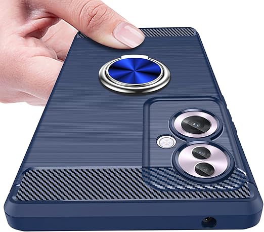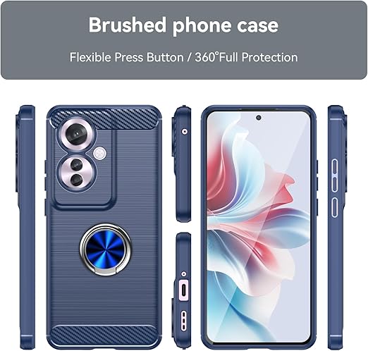 OPPO Reno11 A 用ケース リング付き TPU 炭素繊維スマホケース 衝撃吸収 スタンド機能 薄型 360回転 車載ホルダー対応 散熱加工 指紋防止 スリム ソフト オッポ リノ11 a 用携帯カバー 青 KC-14-107 a