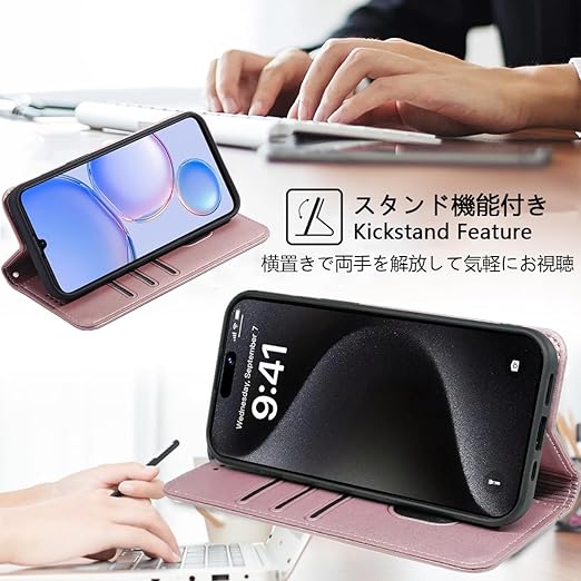 【機能性1:高品質PUレザー】外側のカバーには手触りがとても良い高品質の合成レザーを採用します。内側のスマホホルダーは柔軟なTPU素材を採用したソフトケースとなります。汚れにくくて指紋防止の特徴を持っております。耐衝撃の二重構造で落下の衝撃をうまく吸収します、本体をしっかりと守ります。