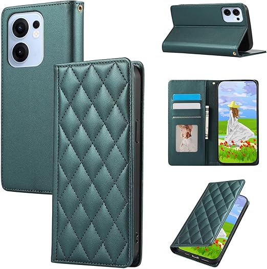 Gedurya OPPO Reno13 A ケース 手帳型 オッポreno13 a ケース 財布型 カード収納 RFIDブロッキング オッポ レノ13a 手帳型ケース マグネット式 ダイヤモンド グリッド シェイプ OPPO Reno 13A スマホケース スタンド機能 Reno13 A 5G 携帯カバー - グリーン a