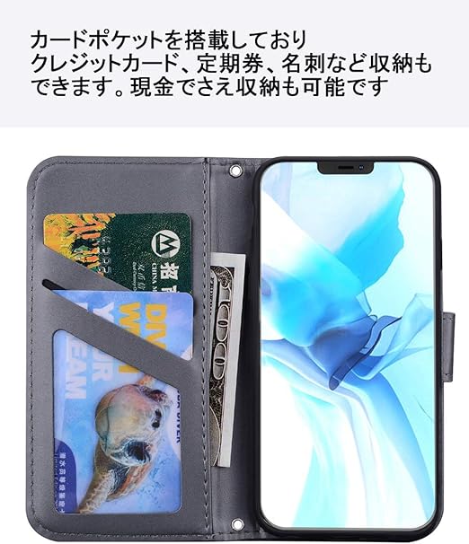 ❷【収納性・財布型】ケースの裏側にカードポケット2つ,クレジットカード、idカード、定期券を収納可能、透明ポケットに写真、名刺入れも可能です。❸【横置きスタンド機能付き】動画の視聴やテレビ電話などを長時間行っても疲れません、新幹線、飛行