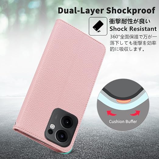 OPPO Reno13 A ケース 手帳型 通用 オッポ OPPOReno13A リノ13A SIMフリー 楽天モバイル ワイモバイル 手帳ケース オッポリノ13A カバー おっぽリノ13A 携帯カバー 手帳 適用 case Cobeimisr ライチ紋 軽量 カードケース ストラップ スマホケース ピンク a
