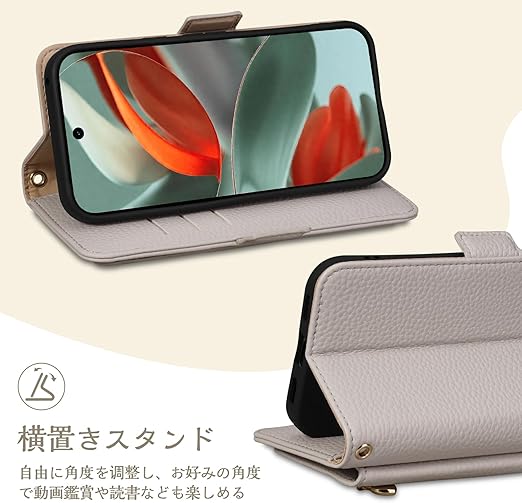 Rssviss Google Pixel 10 ケース 手帳型 Pixel 10 pro ショルダー 財布一体型 カード収納 大容量 スタンド機能 汗、指紋や擦り傷防止 手首/肩掛けストラップ付き (長さ調整可能) 小銭入れ 全面保護 レザー グレー a