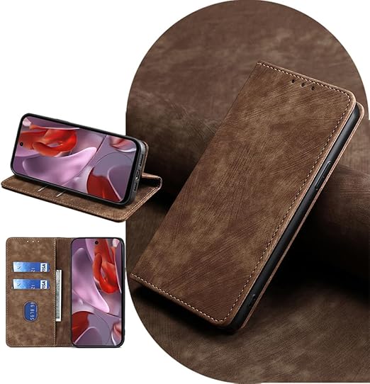 AiMaoo ケース Google Pixel 10 Pro 5G 対応 防塵 耐衝撃 傷つけ防止 軽量 ギャラクシー 手作り PUレザー カード収納 RFID磁気防止 マグネット スタンド機能 ケース 手帳型 Pixel 10 Pro 5G 用 (ブラウン) a