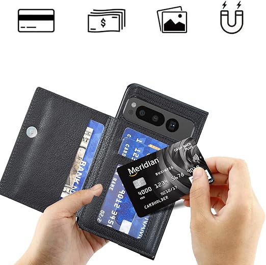 【Anrek】Google Pixel Fold docomo 用 ケース 手帳型 財布型 新型 防水 き 衝撃吸収 軽量 め 多機能 落下保護 手帳型 ケース(ブラック)ピクセル フォールド 高級 PU革 磁石吸着 ポケッ 片手操作背面 IC カード 収納 横置き機能 ケースfold 黒 a
