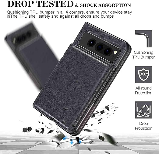 【Geshh】Pixel Fold docomo 財布型ケース カード収納 左右開 薄型軽量 耐久性 カバー(ブラック)背面ケース スタンド機能 手触りが良い 上質 スキミング防止 手帳型ケース グーグル ピクセル フォールド 黒 a