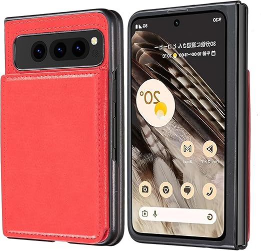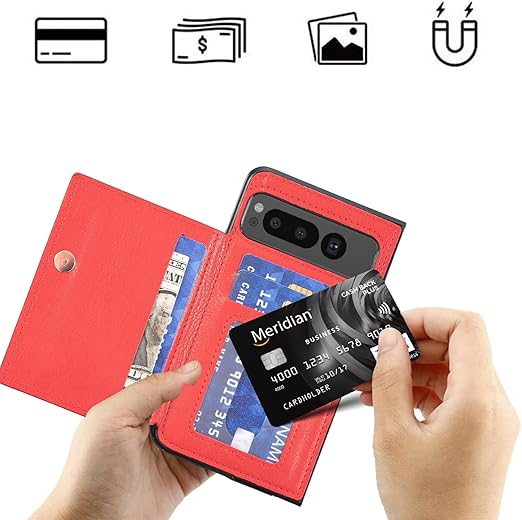 【Anrek】Google Pixel Fold docomo 用 ケース 手帳型 財布型 新型 防水 き 衝撃吸収 軽量 め 多機能 落下保護 手帳型 ケース(レッド)ピクセル フォールド 高級 PU革 磁石吸着 ポケッ 片手操作背面 IC カード 収納 横置き機能 ケースfold 赤色 a