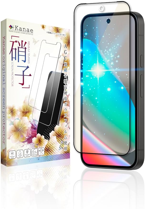 叶kanae カナエ Google Pixel 10 用 / 10 Pro 用 / 9 用 / 9 Pro 用 ガラスフィルム 強化ガラス 全面保護 保護フィルム フィルム ブルーライトカット 液晶保護フィルム ブラック 1枚入り a