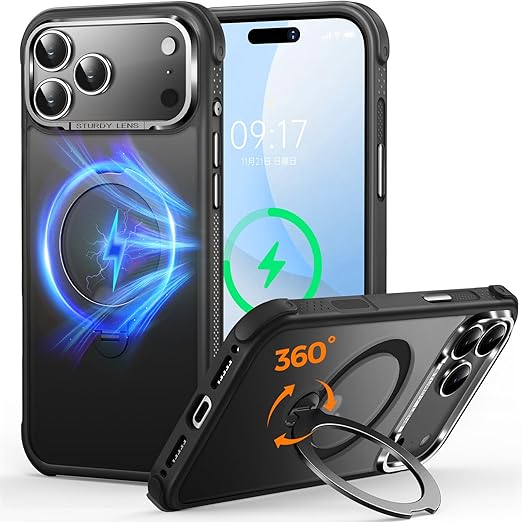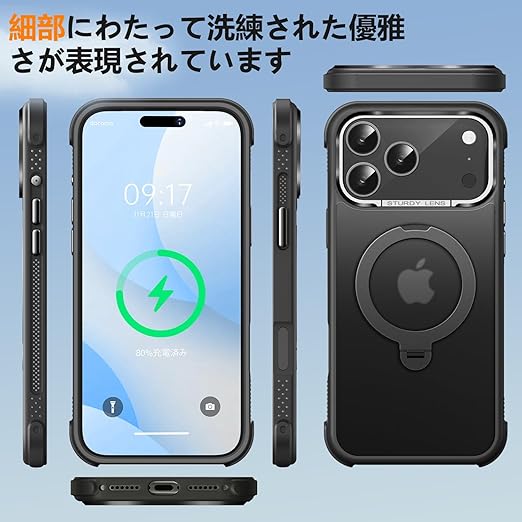 【2025新開発!新型TPUバンパー・安全性 】CUTELFON iPhone 17 Pro Max ケース 3倍米軍規格認証 耐衝撃 MagSafe対応 ワイヤレス充電 いPhone17 Pro Max ケース 360°回転【横縦両立・角度自由調整】黄ばみなし 傷防止 アイフォン17 Pro Max ケース 対応 半透明 iPhone 17 Pro Max 6.9インチ用デザートチタニウム b