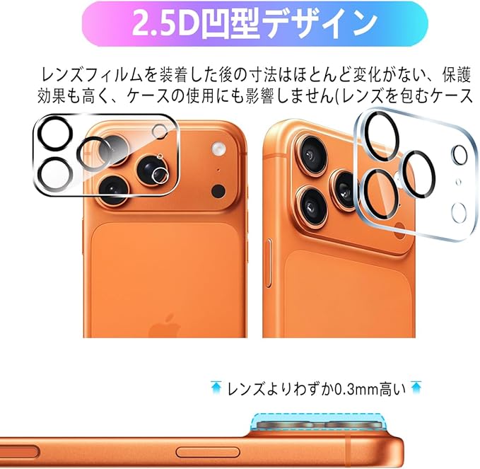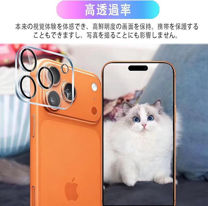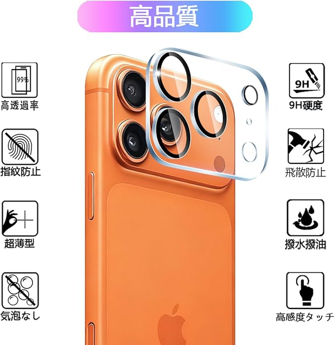【9H硬度 飛散防止】 対応 iPhone 17 pro カメラフィルム はす旭硝子で作られており、スマホ保護フィル