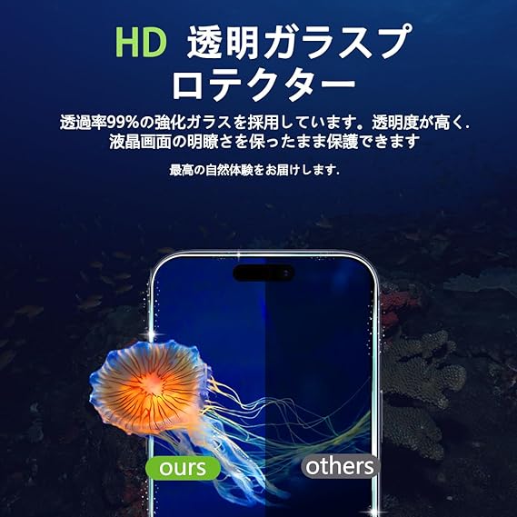 【高透過率】 高品質の日本製旭硝子素材を採用することで透過性がに達しています。市販のガラスフィルムより透明度が高くて、液晶画面の本来の美しさを損なわないません。高