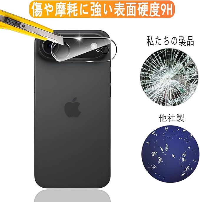 【10H強度&飛散防止】対応 アイフォン17 Air レンズ 強化ガラス 保護フィルムは日本旭硝子素材を採用します。 落下、スクラッチ、衝突、衝撃に高い耐久性があります 衝撃を最小限に抑えてカメラの破損を抑え。カッターなどの