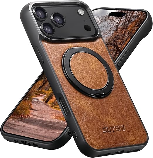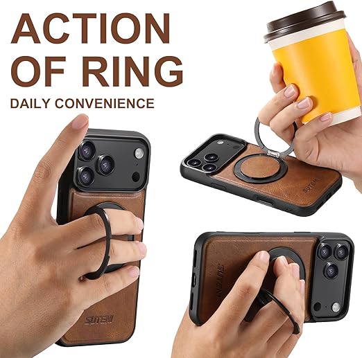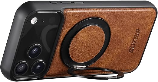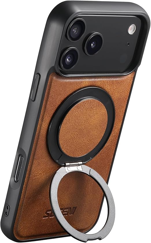 JCGOOD iPhone 17 Pro ケース MagSafe対応 背面隠し収納式リング付き スタンド機能 360度回転横縦両角度調整 落下防止 いphone17pro ケース ワイヤレス充電対応 車載ホルダー アイフォン17 プロ カバー滑り止め レザー スマホケース軽量薄型耐衝撃保護アイホン17プロ 用 ブラウン a