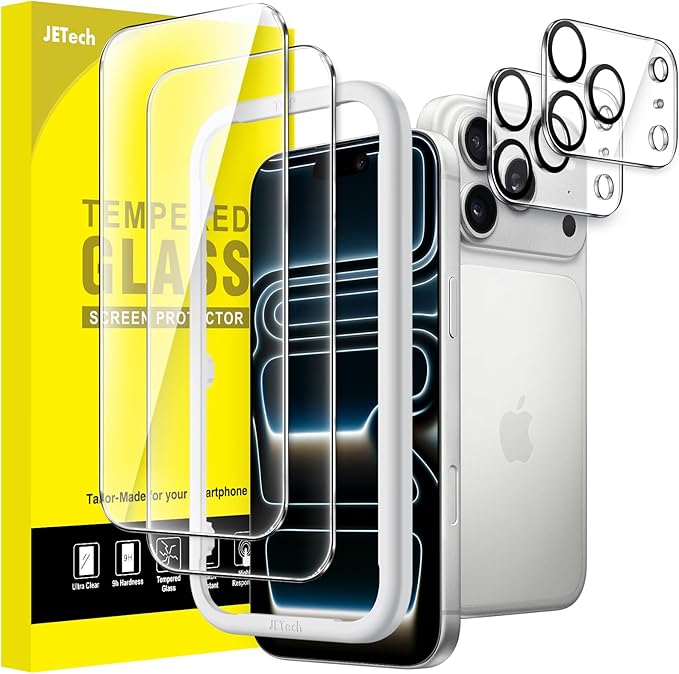 JETech iPhone 17 Pro Max 6.9インチ用 液晶保護フィルム カメラレンズフィルム付き ガイド枠付き 9H硬度強化ガラス製 HDクリア 2枚+2枚セット a
