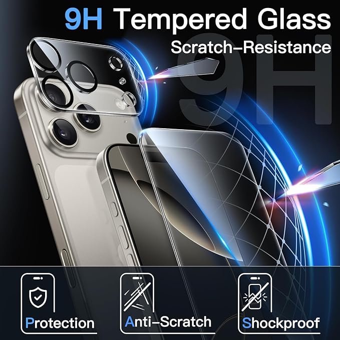 [9H強化ガラス] プレミアム9H硬度強化ガラスを使用したこのプロテクターは、画面とカメラレンズの両方を傷、擦り傷、軽度の衝撃から確実に保護します