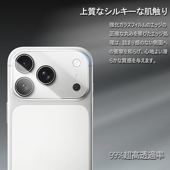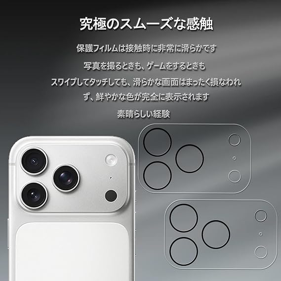 【貼付け簡単】いphone17pro max カメラ保護 静電気自動吸着加工により、位置を合わせて上から軽く置くだけで気泡が入ることなく簡単に装着できます。
