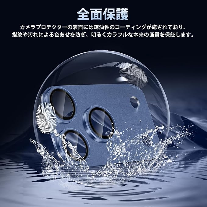 LuFiYa カメラフィルム iPhone 17 Pro Max 対応 レンズカバー、アルミ合金+9H硬度強化ガラス製 アイフォン17 Pro Max 用 レンズカバー 全面保護 高透過率 露出オーバー防止 耐衝撃 カメラ保護フィルム - ディープブルー a