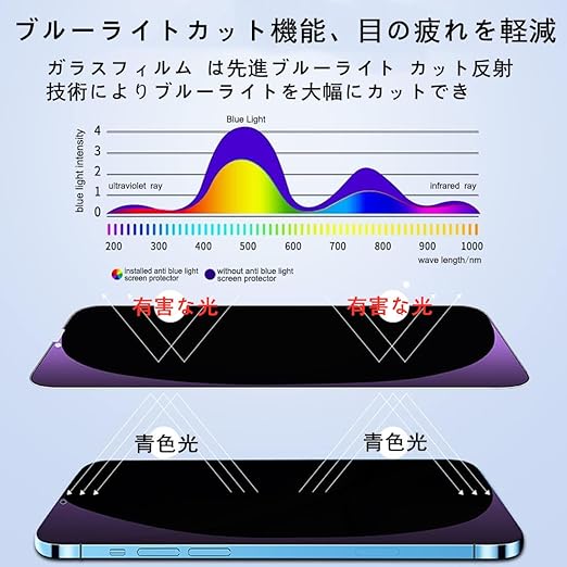 【2枚セット】【ブルーライトカット&360°覗き見防止】LXBESOS for iPhone 17 Pro Max ガラスフィルム 360°覗き見防止 上下左右 プライバシー保護 ブルーライトカット 目の疲れを軽減 視力を保護 目の疲れ軽減ぐ 防ぎ 目に優しい プライバシー保護 硬度9H 撥油性 貼付け簡単 対応アイフォン 17 Pro Max 覗き見防止 強化ガラスフィルム a