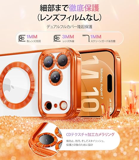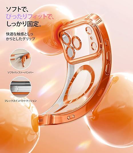 メタリックな光沢デザイン:このケースはiPhone 17 Proに対応しています。背面は透明ですが、エッジ、カメラレンズ、マグネットリングはすべてメタリックな光沢仕上げで、他にはない個性を放ちます。電気メッキ加工により、色褪せたり剥がれたりしない鮮やかな発色を実現しています。