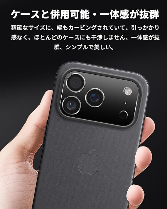 【アルミ合金一体感】アルミ合金素材を採用して、ガラス製カメラフィルムより軽い上に割れることもなく、指紋も付きにくいです。さらにアルマイト処理が施されているので、耐摩耗性にも優れています。縁部分も含め、精確なサイズにカービングされているので引っかかる感じがなく、ほとんどのケースとも干渉しません。 本体のレンズ部分と完全に融合し、違和感がなく、一体感と高級感に満ちていま