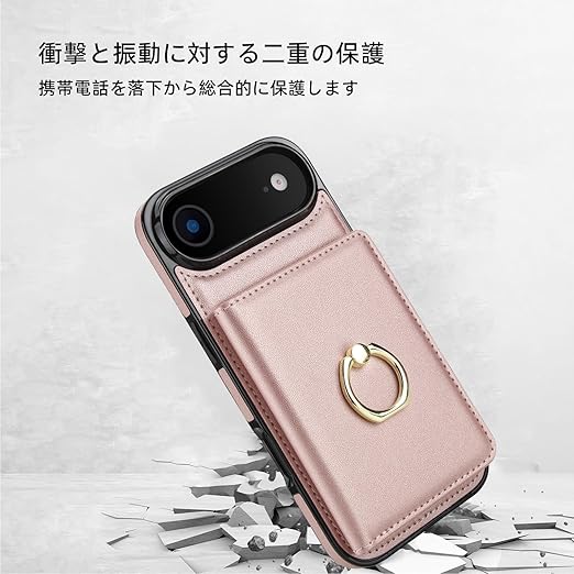 Noaivoky 適用 iPhone 17 Air ケース 手帳型 アイフォン17 エア ケース 背面カード収納 リング付き スマホケース いphone17air 財布型 スタンド機能 携帯カバー 17 air PUレザー RFIDブロック機能 おしゃれ あいふおん17エア カバー 防水 耐摩擦 耐衝撃 アイホン17 エア カード リング - ゴールデンピンク a