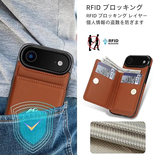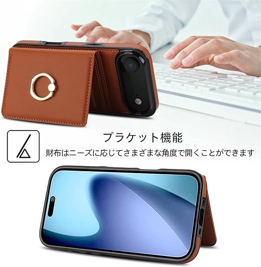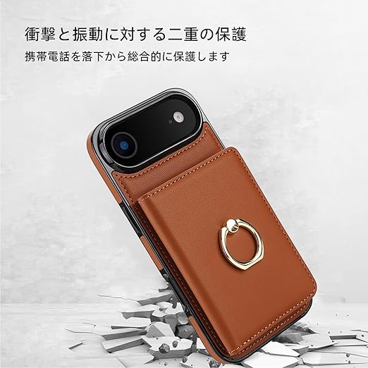 Noaivoky 適用 iPhone 17 Air ケース 手帳型 アイフォン17 エア ケース 背面カード収納 リング付き スマホケース いphone17air 財布型 スタンド機能 携帯カバー 17 air PUレザー RFIDブロック機能 おしゃれ あいふおん17エア カバー 防水 耐摩擦 耐衝撃 アイホン17 エア カード リング - 茶色 a