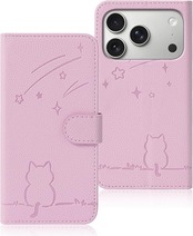 Rosbtib 用の iphone 17 Pro ケース 手帳型 いphone17pro ケース 流れ星子猫 iPhone17Pro 手帳型ケース 可愛い 猫柄 ねこ いphone17 pro ケースカバー 財布型 耐衝撃 アイフォン17プロ 携帯カバー カード収納 iPhone17プロ スマホケース オシャレ 軽量 耐久性 スタンド機能 PUレザー 内蔵マグネット 携帯ケース(ピンク) a