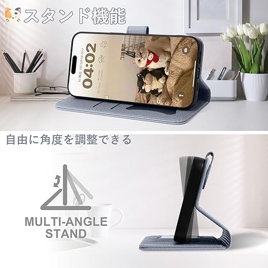 横置きスタンド機能 iPhone17Pro ケースは画面側のカバーを折り返してスマホを自立させられ、画面を支える向きをお好みの角度や高さに調整でき、長時間で動画を視聴しても腕が疲れません。また、携帯ケースなら安定感を保ちながら動画を楽しむことがで