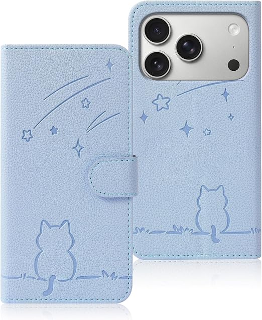 Rosbtib 用の iphone 17 Pro ケース 手帳型 いphone17pro ケース 流れ星子猫 iPhone17Pro 手帳型ケース 可愛い 猫柄 ねこ いphone17 pro ケースカバー 財布型 耐衝撃 アイフォン17プロ 携帯カバー カード収納 iPhone17プロ スマホケース オシャレ 軽量 耐久性 スタンド機能 PUレザー 内蔵マグネット 携帯ケース(ブルー) a