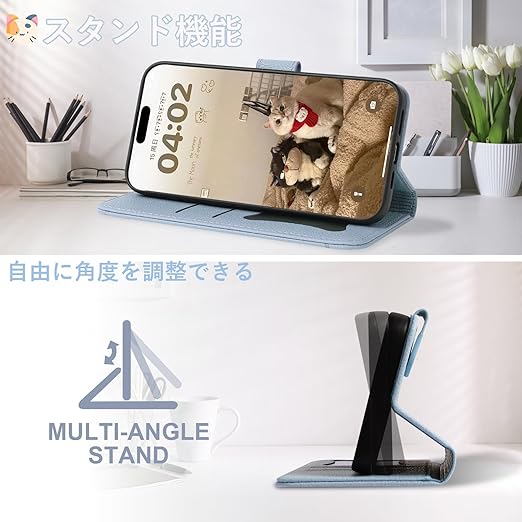 横置きスタンド機能 iPhone17Pro ケースは画面側のカバーを折り返してスマホを自立させられ、画面を支える向きをお好みの角度や高さに調整でき、長時間で動画を視聴しても腕が疲れません。また、携帯ケースなら安定感を保ちながら動画を楽しむことがで
