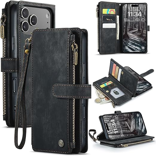 SeGinn iPhone 17 Pro Max 対応 ケース 手帳型 カバー PUレザー 多財布デザイン スタンド機能付き 磁気バックル付き カード収納 コイン収納 アイフォン 17 pro max ケース 手帳型 大容量財布型 収納ポケット 衝撃防止 擦り傷防止 スクリーン/カメラ保護 実用性高 iPhone 17 pro max 財布型ケース (ブラック) a
