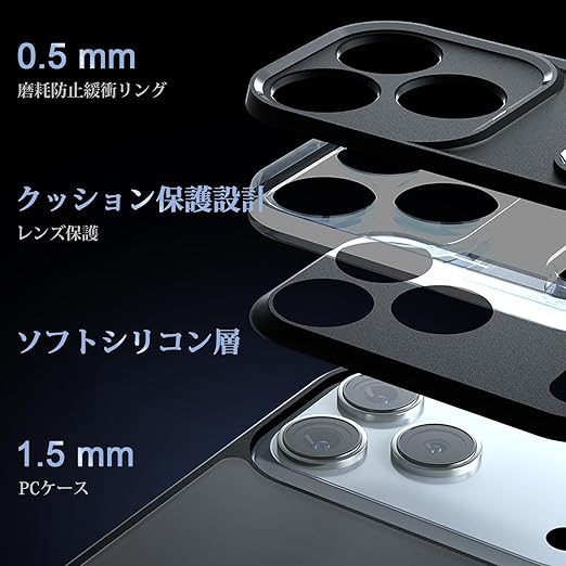 【レンズとスクリーン保護】ケースの厚さは本体より若干高く、iphone 17 airが机などの平面の物の上に置いても傷がつかない。スマホが落下した際に液晶画面やレンズに傷が付かないようにする。