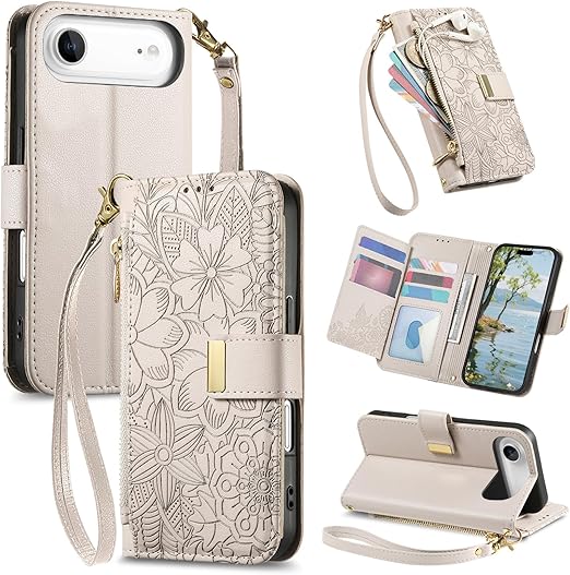 TOO&SOO 対応 いphone17air ケース 手帳型 肩掛け iphone 17 air 手帳型 ショルダー アイフォン17エアー カバー 斜め掛け スマホケース iphone 17 air 斜めがけ 人気 アイホン17エアー 手帳カバー 女性 phone17air 携帯カバー 花柄 肩がけ ストラップ付き 小銭入れ カード収納 スタンド機能 シンプル お洒落 衝撃吸収 - ベージュ a