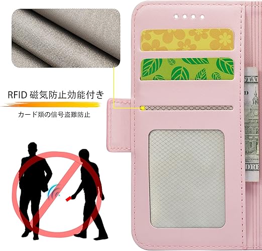 【RFID磁気防止 高品質レザー製】今回はカードポケットにRFID設計加入し、磁気カードを保護するために磁器遮断功能があり、スキミング防止、不正アクセスから大切なカード類の信号盗難防止でご財布をきちんとお守れ、クレジットカード、キャッシュカード、IDカードなどの個人情報を守れる。手帳型外部のカバーは肌感のような素材を採用しており、普通のレザーより、耐熱性と柔軟