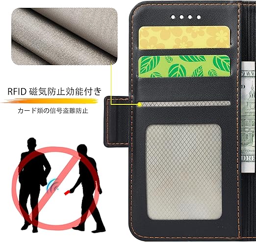 【RFID磁気防止 高品質レザー製】今回はカードポケットにRFID設計加入し、磁気カードを保護するために磁器遮断功能があり、スキミング防止、不正アクセスから大切なカード類の信号盗難防止でご財布をきちんとお守れ、クレジットカード、キャッシュカード、IDカードなどの個人情報を守れる。手帳型外部のカバーは肌感のような素材を採用しており、普通のレザーより、耐熱性と柔軟