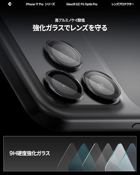 Spigen iPhone 17 Pro / 17 Pro Max カメラ保護フィルム iPhone 16 Pro / 16 Pro Max 対応 ブラック色 9H硬度強化ガラス レンズプロテクター 2枚入 AGL05205 a