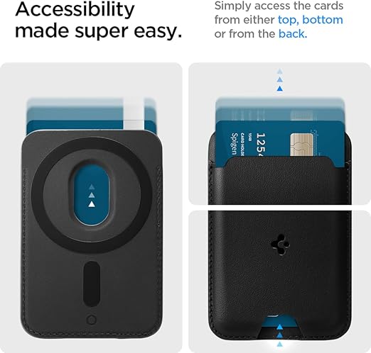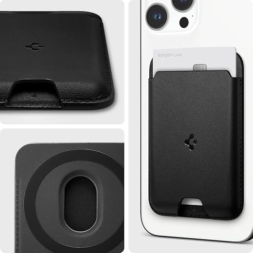[Spigen] MagSafe対応 カードケース【最大2枚カード入れ】 iPhone 17 Pro Max iPhone 17 Pro iPhone 17 iPhone Air iPhone 16/15/14/13/12シリーズ マグネット内蔵 高級レザー スリム 背面 ウォレット スマホ カードケース 交通系 ICカード バレンティヌス・マグフィット AMP02284 (ブラック) a