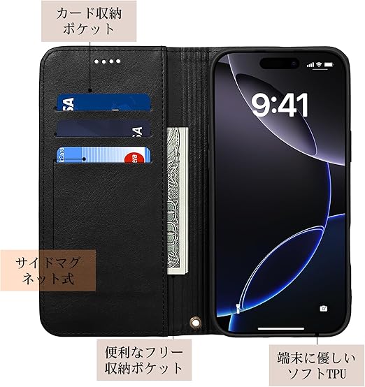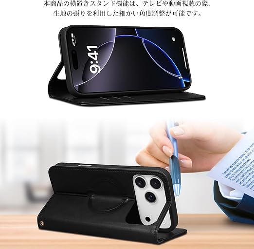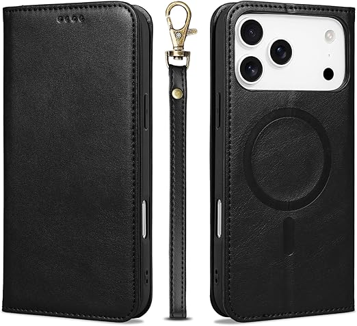 【Keallce】iPhone 17 Pro Max ケース 手帳型 スマホケース カード収納 MagSafe対応 ストラップ付き スタンド機能 マグネット付き PUレザー 耐衝撃 全面保護 いphone17Pro Max カバー 6.9インチ ブラック a