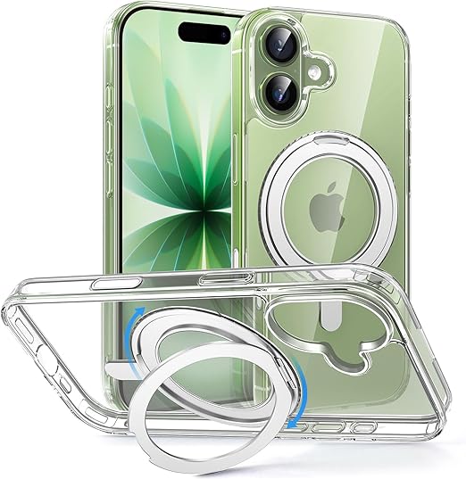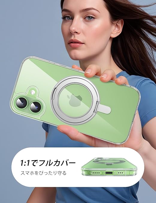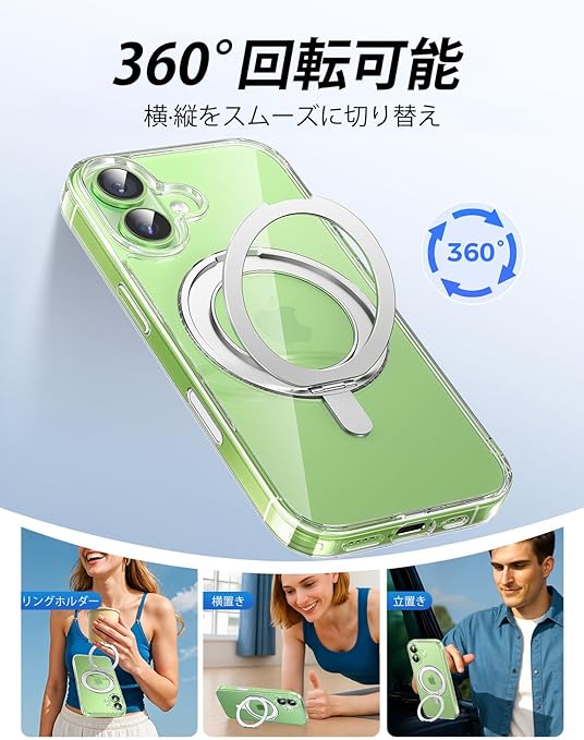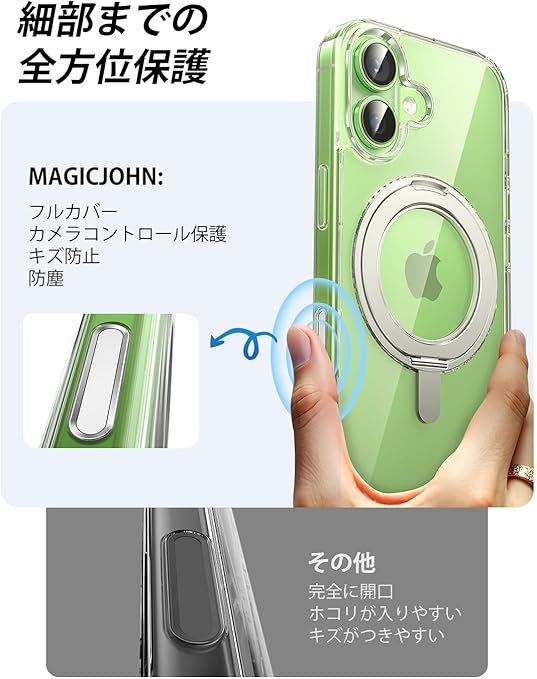 MAGIC JOHN 対応 iPhone 17用 ケース ハード クリア 高透過率 耐黄変 カメラコントロールに対応 スタンド付き 360°回転 MagSafe対応 a