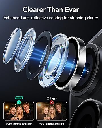【互換性】iPhone 17 Pro/17 Pro Max、iPhone 16 Pro/16 Pro Max、15 Pro/15 Pro MaxおよびiPhone 14 Pro/14 Pro Max専用。このESR レンズフィルムは、互換性のあるあらゆる携帯電話ケースと競合することなく使用できます。