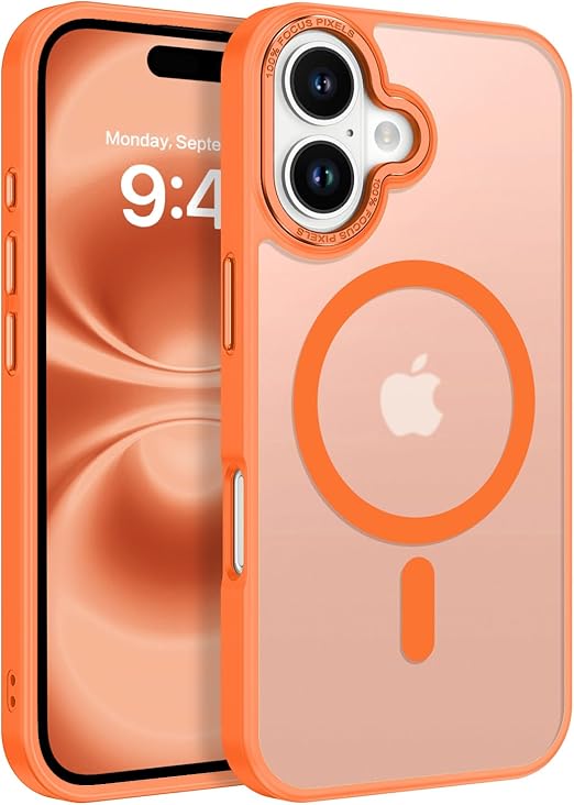 YINLAI iPhone 17 6.3インチ 専用 ケース カバー スマホケース オレンジ|耐衝撃・米軍MIL規格・落下防止・画面 カメラ保護|Magsafe・マグセーフ対応・マグネット・ワイヤレス充電|超強磁力・指紋防止・黄ばみ防止・滑り止め|軽量・薄型・マット仕上げ|便利・耐久性・長持ち b
