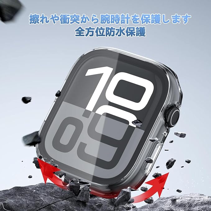 【対応機種】:Apple Watch 46mm専用 ケース 保護カバー コンパチブル Apple Watch Series 11/10。 ※ご購入する前に、まずはアップルウォッチ裏面で記載されたサイズをご確認してください。お客様のアップルウォッチにより正しいサイズのケースを選択してください。【重要】アップルウォッチ本来の防水性能を向上させるものではありません。裏面の接着剤に密着させて防水効果を高めるために、画面の周りの端に沿って、指の腹で繰り返して押さえてください。日常生活の防水には対応できます