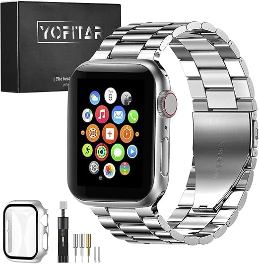 [YOFITAR] for Apple Watch バンド 保護ケース付き ステンレス製 Apple Watch Ultra 3/Ultra 2/Ultra/11/10/9/8/7/SE3/SE2/6/SE/5/4/3/2/1対応 iWatch バンド 長さ調整器具付き(42mm(series 3/2/1),シルバー) a