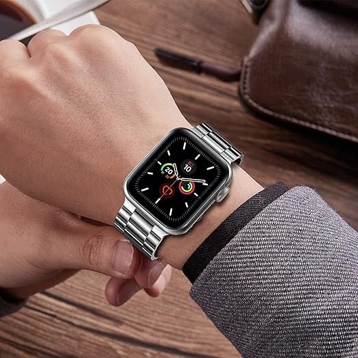 【Apple Watch保護カバー+Apple Watchバンド】Apple Watchにぴったりフィットするケースと交換バンド一体化ステンレスバンドです。ほとんどの時計メーカーで採用されている3連タイプで、金属ブレスとしては一番オーソドックスなタイプになります。横9列になったコマを縦に繋ぎ合わせたブレスレットで、高い堅牢性が特徴です。