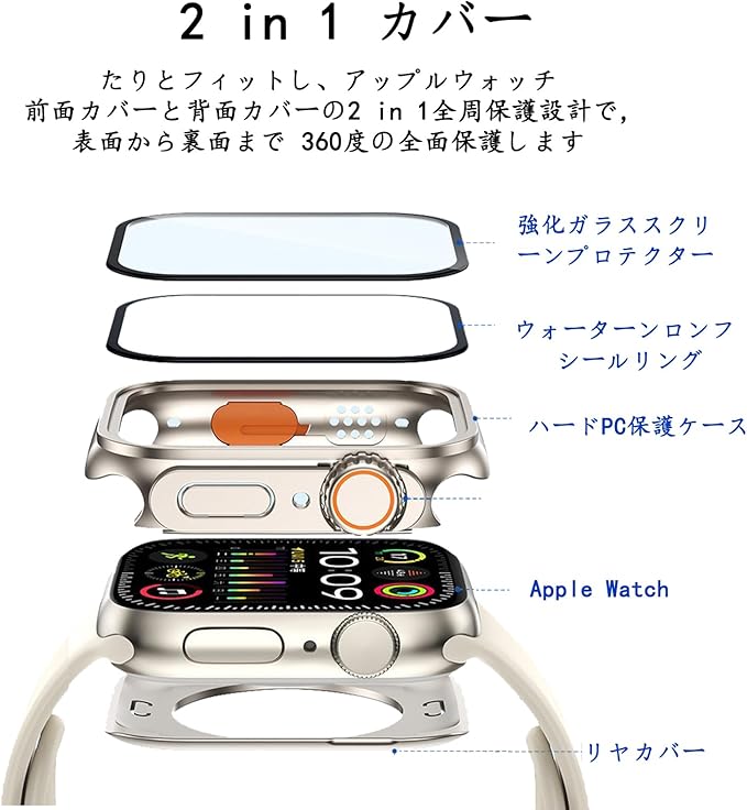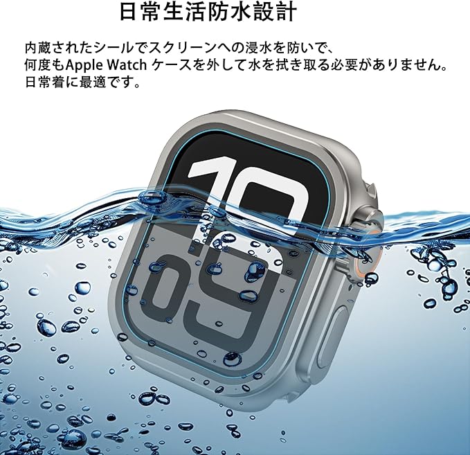 【最新モデル & 2 in 1防水設計】Apple Watchの前面ケースと背面カバーを一体化し、360度全面保護。革新的な防水力を持ち、通勤やスポーツ、手洗い、発汗、雨などの日常使用に適しています。ただし、ダイビングや水泳には適していませんのでご注意ください。