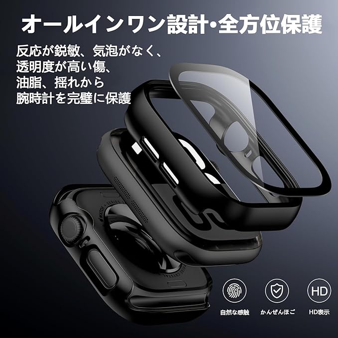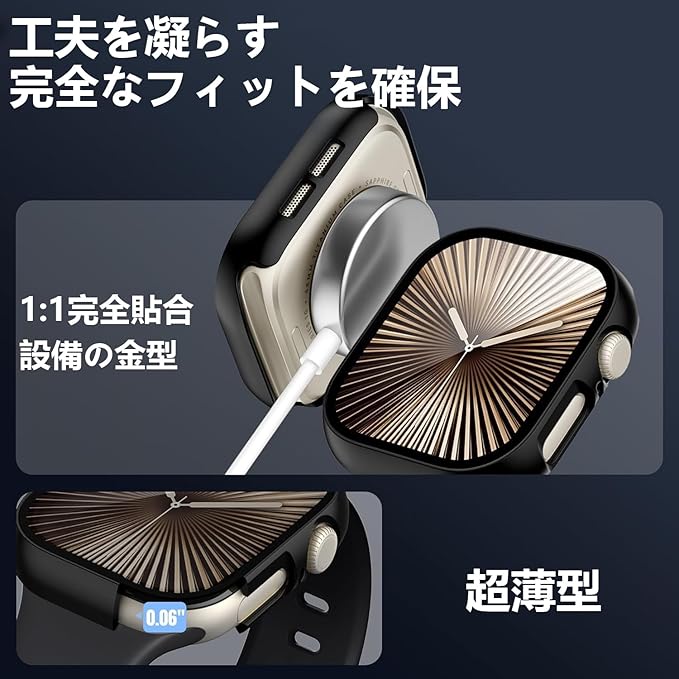 【フルカバー保護】Apple Watch 用 ケース iWatch Series 11/10 46mm対応 超薄型 アップルウォッチ Series 11/10 46mm用 ケース Apple Watch カバー 防水 硬度9H 強化ガラス 装着簡単 高透過率 高耐久 耐衝撃 全面保護 Apple Watchs用 (ブラック) a