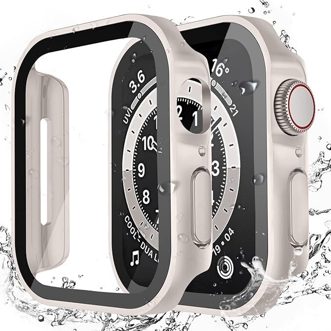 LISAMER 対応 Apple Watch ケース Series 11/10/9/8/SE/7/6/5/4 41mm アップルウォッチ用 ケース 防水 一体型 新デザイン 3D直角エッジ 超薄型 PC+ガラス素材 高透過率 対応 Apple Watch カバー 全面保護 装着簡単 高耐久 耐衝撃 スターライト a