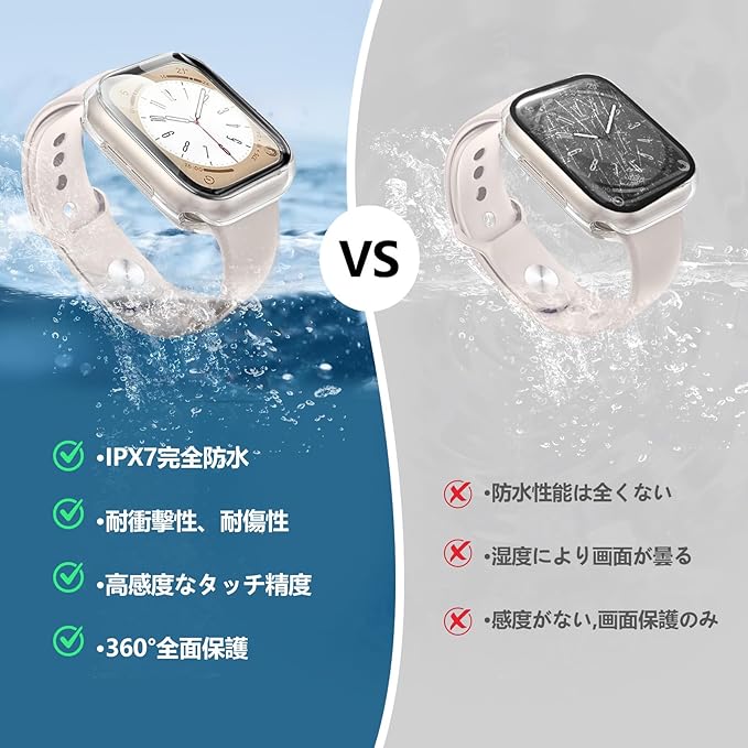 【防水・防塵】シーリングリング内蔵したApple Watchケース、Apple Watchの画面にぴったりとフィットし、水の浸入を防ぎます。ほこりを完全に防ぎ、ケースを取り外して水を拭くすることを繰り返す